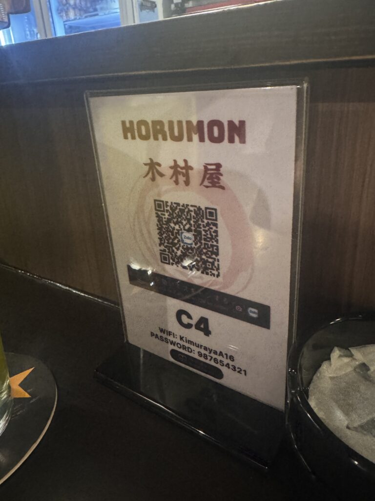 私はいつも店員さんに直接注文してしまうが、ホルモン木村屋はQRコードで注文ができる。